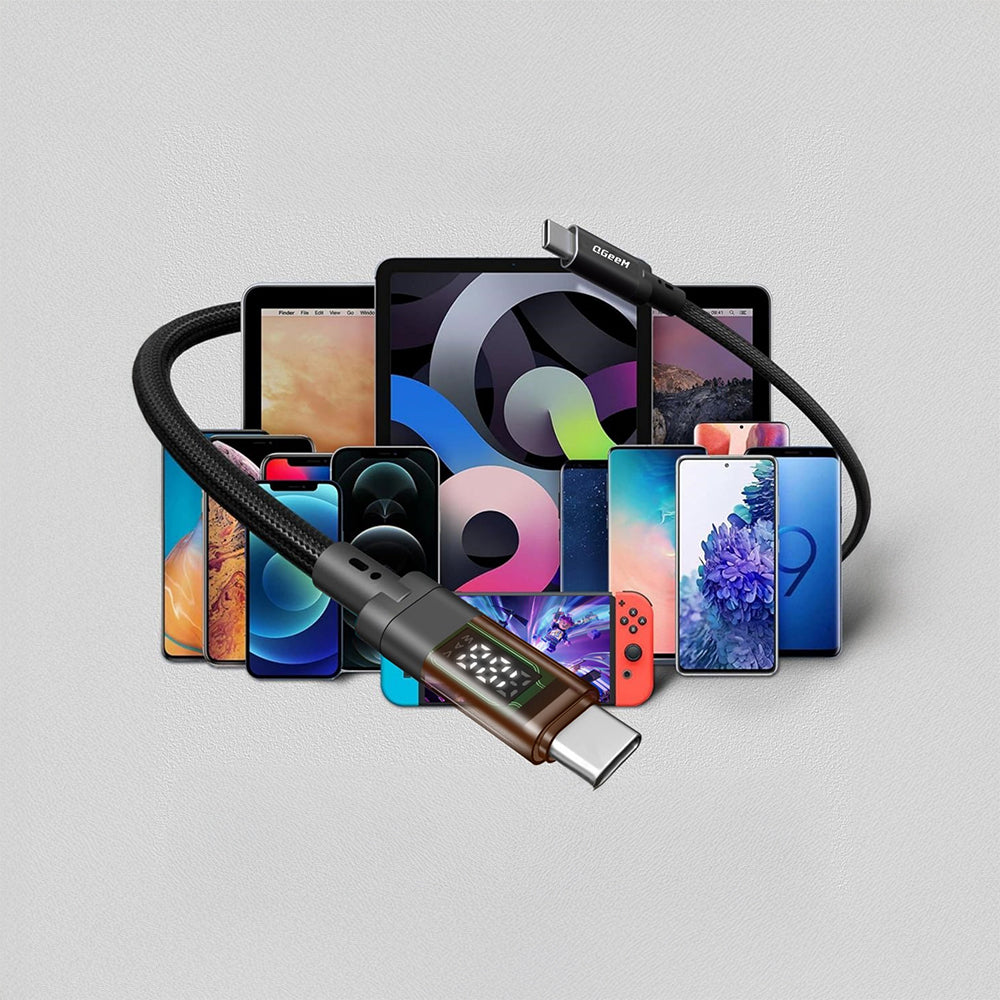 Kablonun üzerinde yer alan dijital LED ekran, anlık akım ve voltaj bilgilerini görüntülemenizi sağlar. Bu sayede hangi cihaz ne kadar güç çekiyor anlık olarak kontrol edebilirsiniz. Hem teknik takip imkânı sunar, hem de modern ve şık görünümüyle dikkat çeker. Günlük kullanımda taşınabilir şarj istasyonlarıyla, masaüstü bilgisayarlarla veya iPad Pro gibi yüksek güçlü cihazlarla kusursuz uyum sağlar.